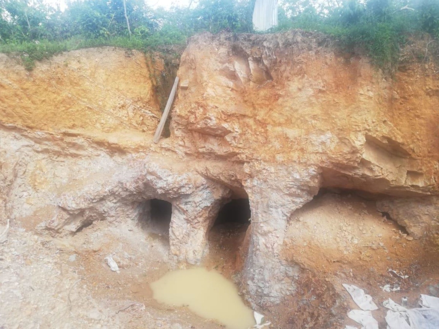 One of our regional gold breccia prospects in the Siuna district, Golden Triangle. Here the breccia body has been mined just beneath the weathered zone by artisanal miners. This breccia carries gold grades in excess of 30 grams per tonne and is yet to be drill-tested