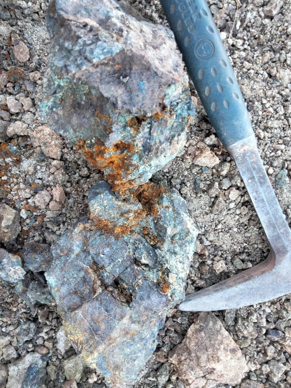 Fruits of our labour...copper oxides found during reconnaissance exploration work. Coming up for air!