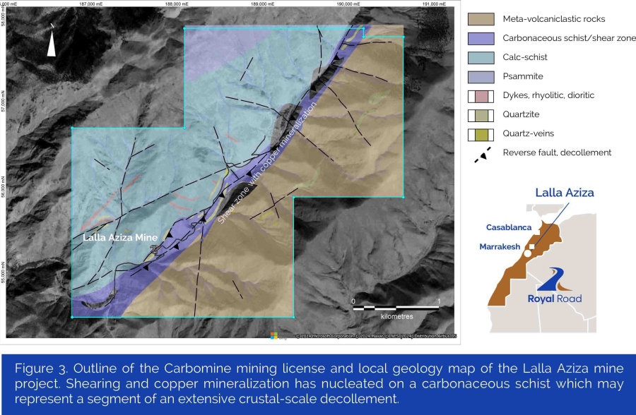 Royal Road intends to complete mapping, underground and surface rock-chip and soil geochemical sampling with a view to drill-testing potential along-strike and down-dip at Lalla Aziza by early 2025.